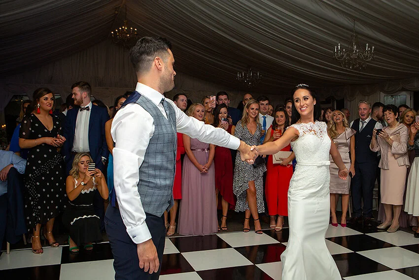 Rachel & Michael’s brings back great memories. I photographed their friends wedding the previous year and I was delighted when they got in touch and booked me. The morning preparations at Rachel's parents house were included a floss dance performance - what a great start of the day! The ceremony was beautiful and personal. On the way to Clonabreany House we stopped for a few photos outside some cottages with brightly painted door, the white of the wall and the red of the door was a great backdrop! Clonabreany House is such a great venue with lots of different spots for photos, we were spoiled for choice. Some couples are a bit apprehensive of getting photos taken and are unsure of what to do, where to look, what to do with their hands. It's all about being playful, focus on each other and having a bit of fun and Rachel & Michael had plenty of fun! Later, when the band started to play, Rachel & Michael took centre stage and soon enough the dance floor got mobbed and the party really got going.